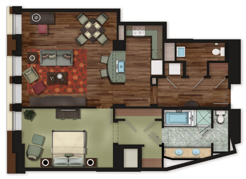 ワンベッドルームの間取りです。(公式サイトより)