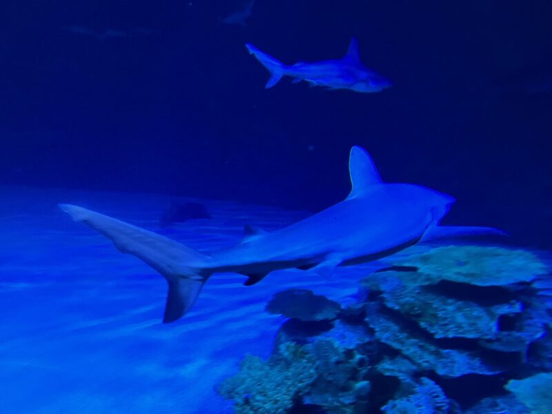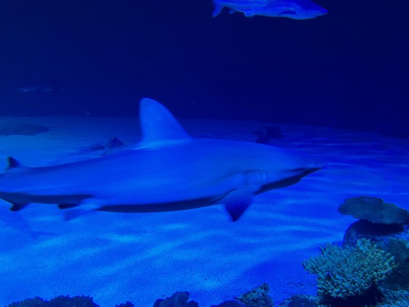 没入感のある体験: 水族館は、海底に沈んだ古代の神殿や難破船をイメージしたユニークな造りになっています。特に、サメやエイが頭上を泳ぐ水中トンネルは、まるで海の中にいるような体験ができます。