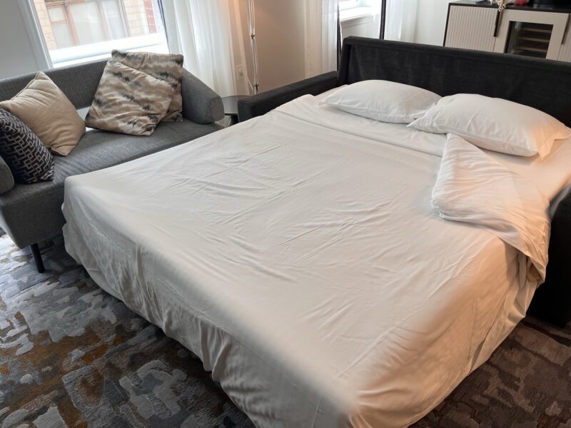 ソファーベッドをベッドにしてほしいとお願いすると、