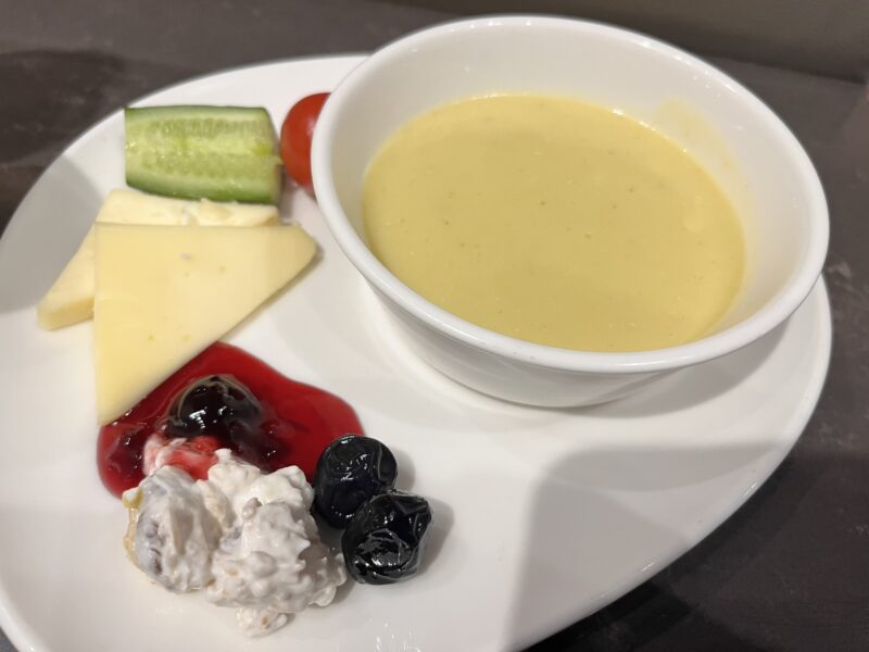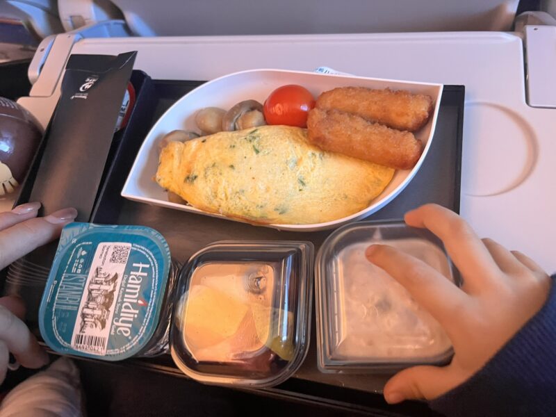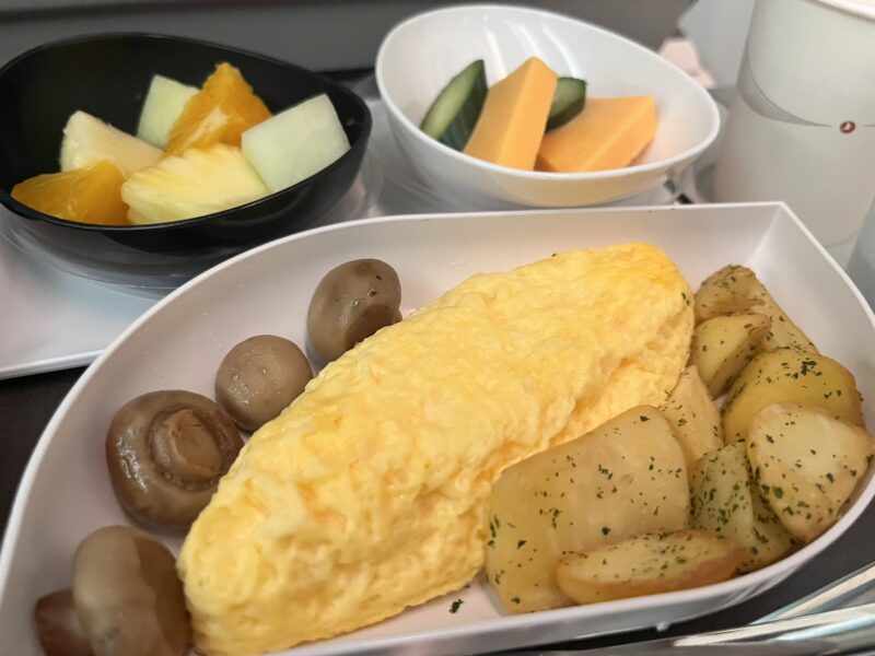 【朝食】 日本時間の朝5時ごろに提供された朝食も、旅の始まりにふさわしい美味しいメニューでした。
