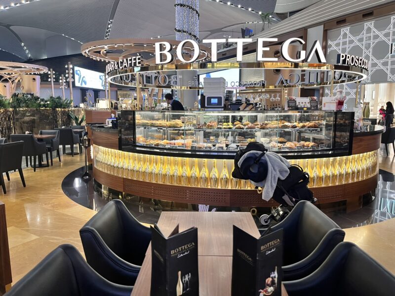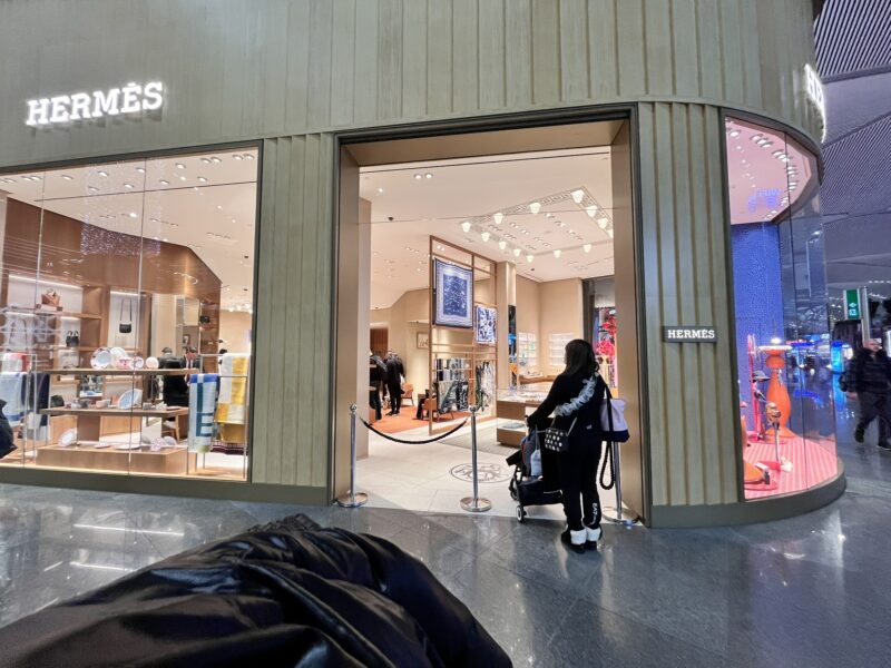 深夜でも活気あり: ボッテガのカフェがあったり、深夜にも関わらずエルメスが開いていたりと、さすがハブ空港といった活気を感じました。