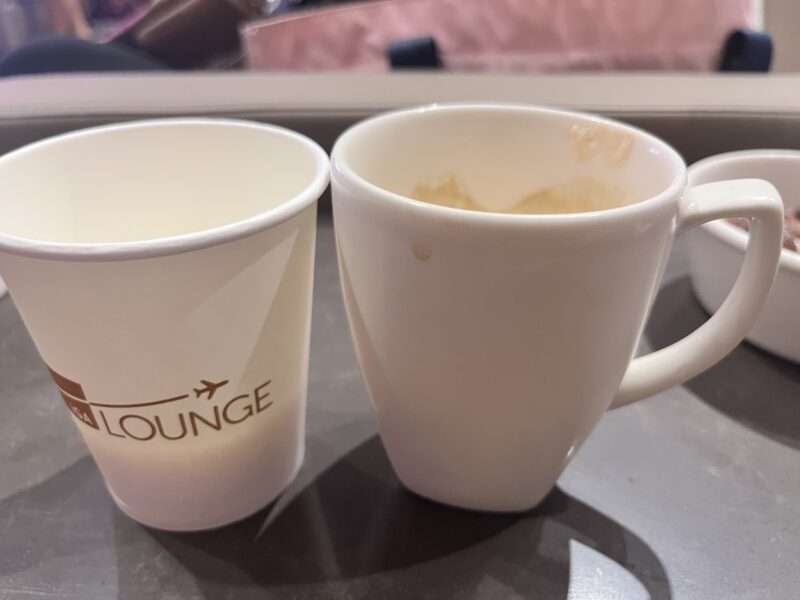 雰囲気と提供サービス: 非常に広々としていて、豪華でセレブな雰囲気を味わえる素敵なラウンジでした。私たちが利用した時間帯はアルコールの提供はなく、ドリンクはソーダ系が中心、軽食のみでしたが、スープ、チーズ、フルーツ、コーヒーなど、子どもが食べられるものも含めて少しいただきました。