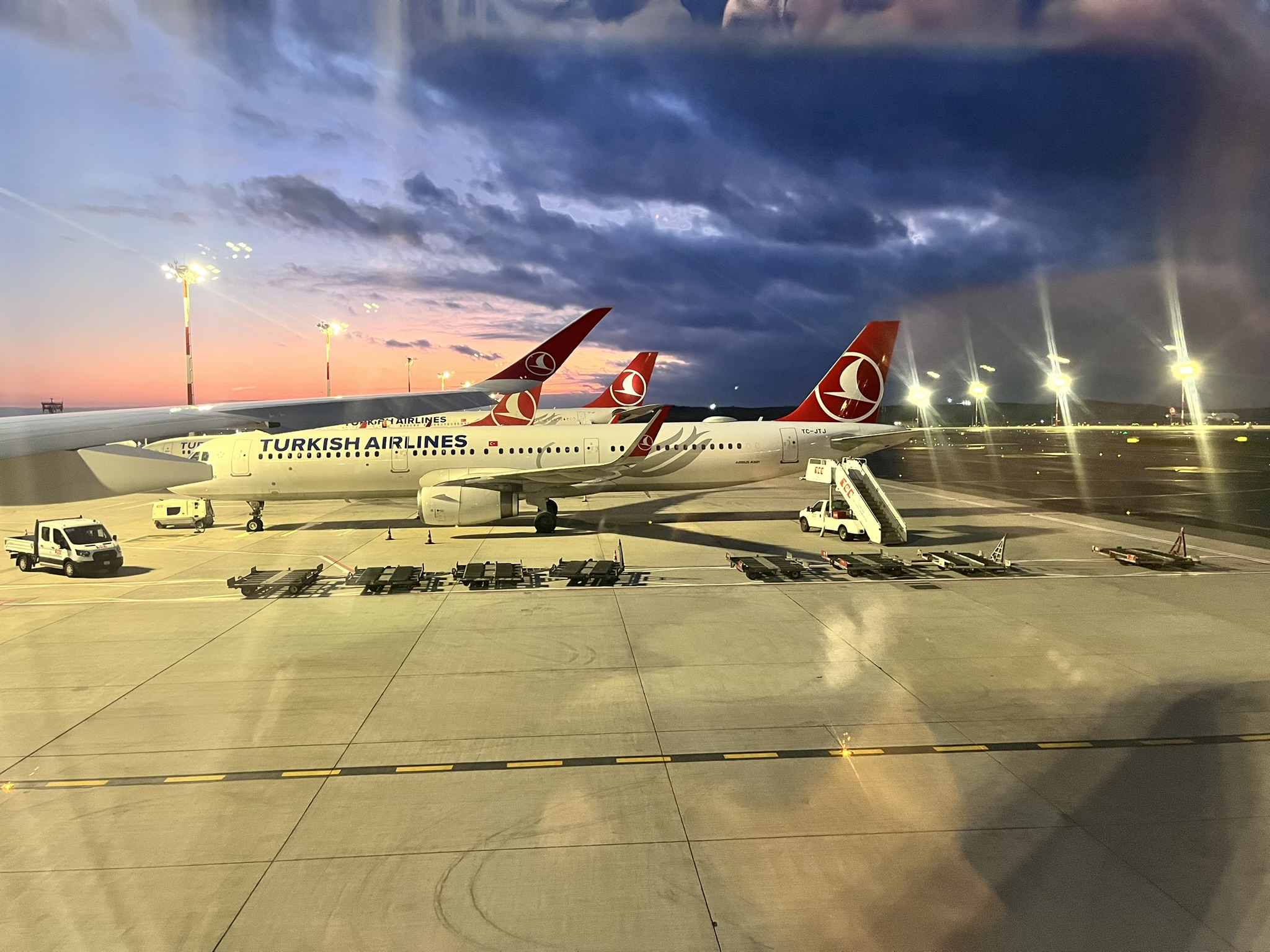 家族全員体調万全で、いよいよ出発の日を迎えました! 夜22時頃、関西国際空港(KIX)からトルコ航空(ターキッシュエアライン)に乗り込み、まずは乗り継ぎ地のイスタンブール空港へ向かいます。