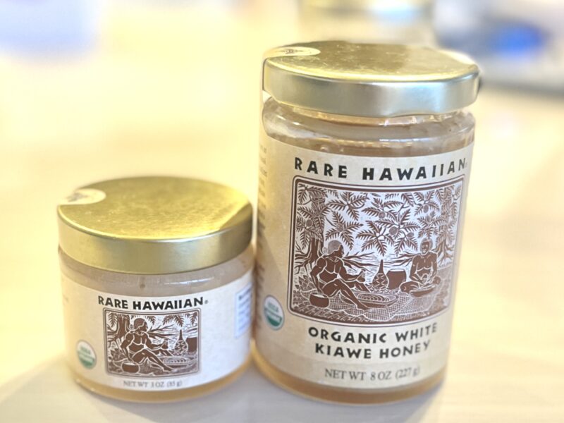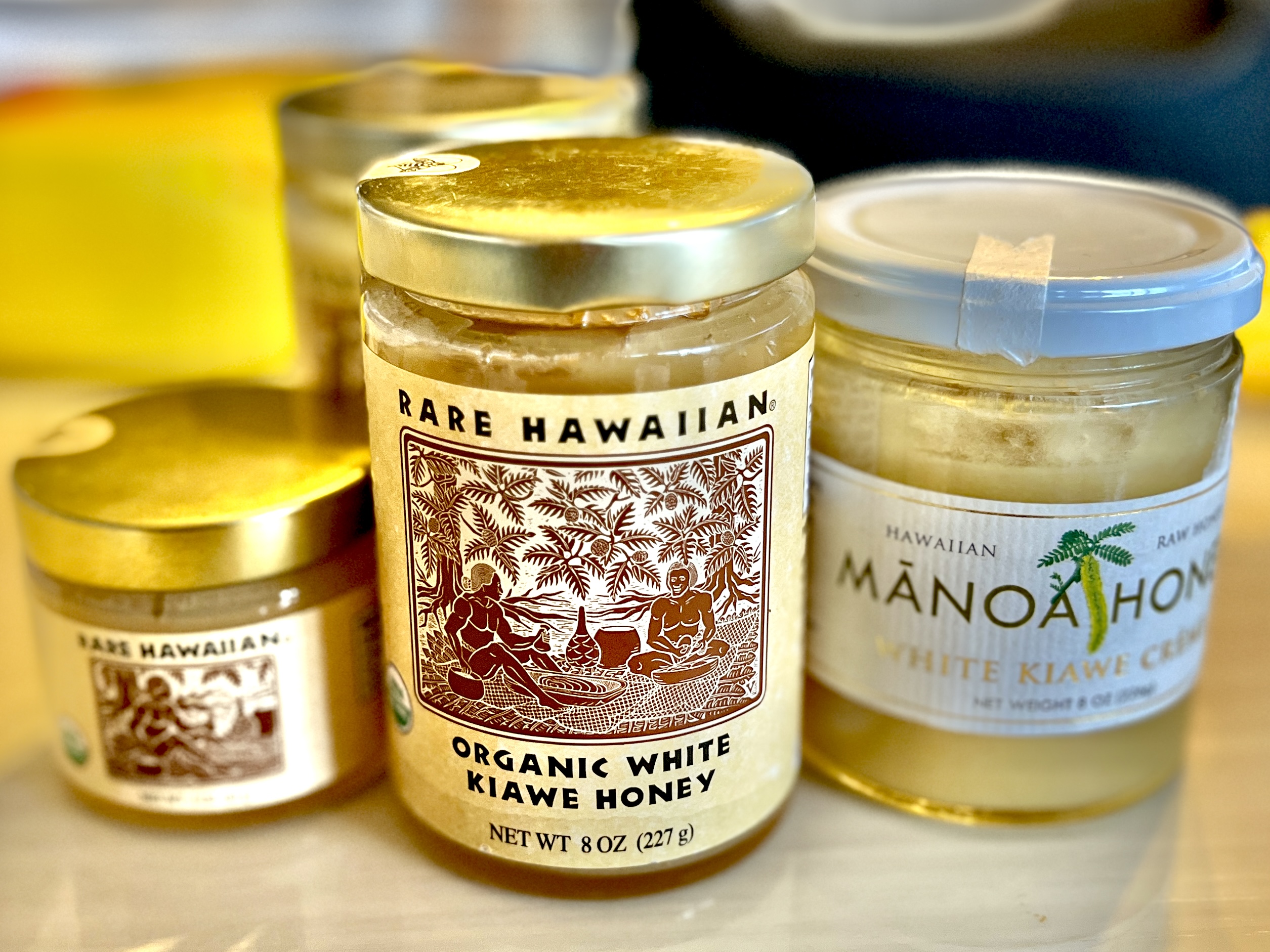 • 左:Rare Hawaiian Honey Co. (レア・ハワイアン・ハニー) 世界最高ランクのオーガニック白蜜。USDA認証の希少な逸品。
